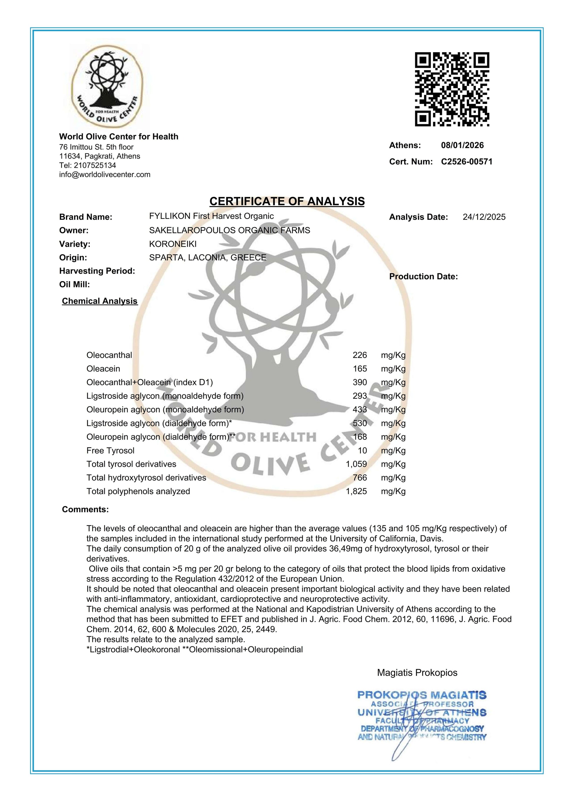 - Olivinus International Olive Oil Competition 2020: GRAND PRESTIGE GOLD