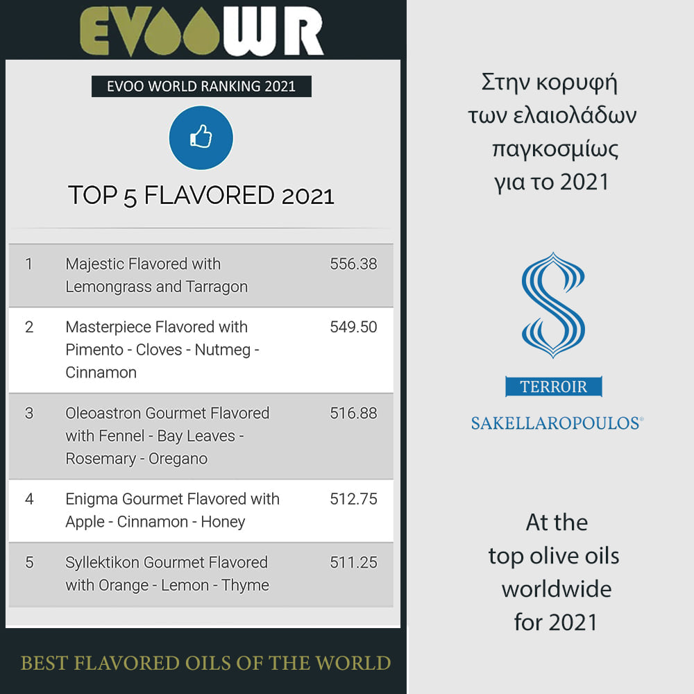 - EVOOWR 2021 World Ranking Extra Virgin Olive Oils: 1st Place for Best Flavored EVOO