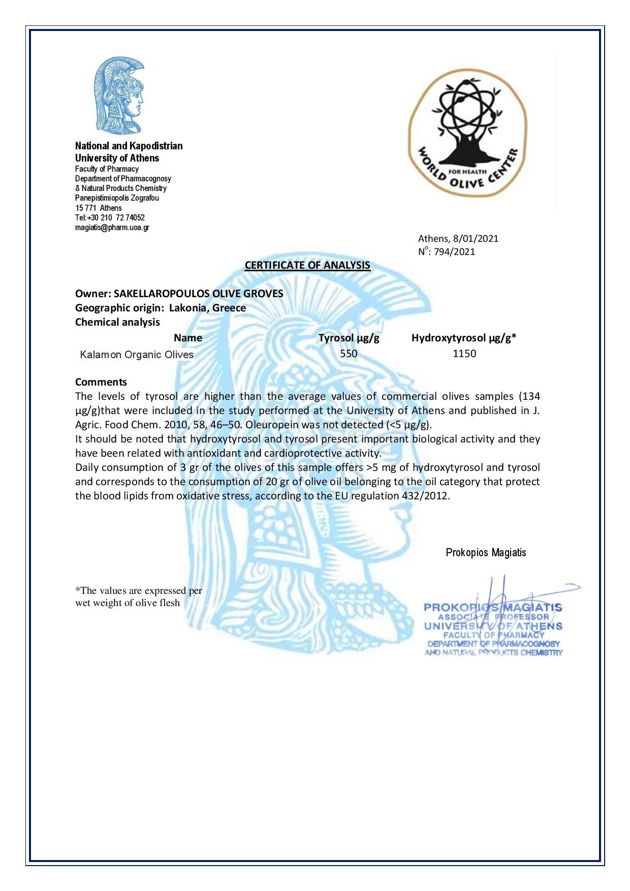 These olives are participating in the "Olives For Health" research project at the Yale School of Public Health in collaboration with the Department of Cardiology of the School of Medicine at Yale University in the USA, with ClinicalTrials.gov registration number NCT05218980.